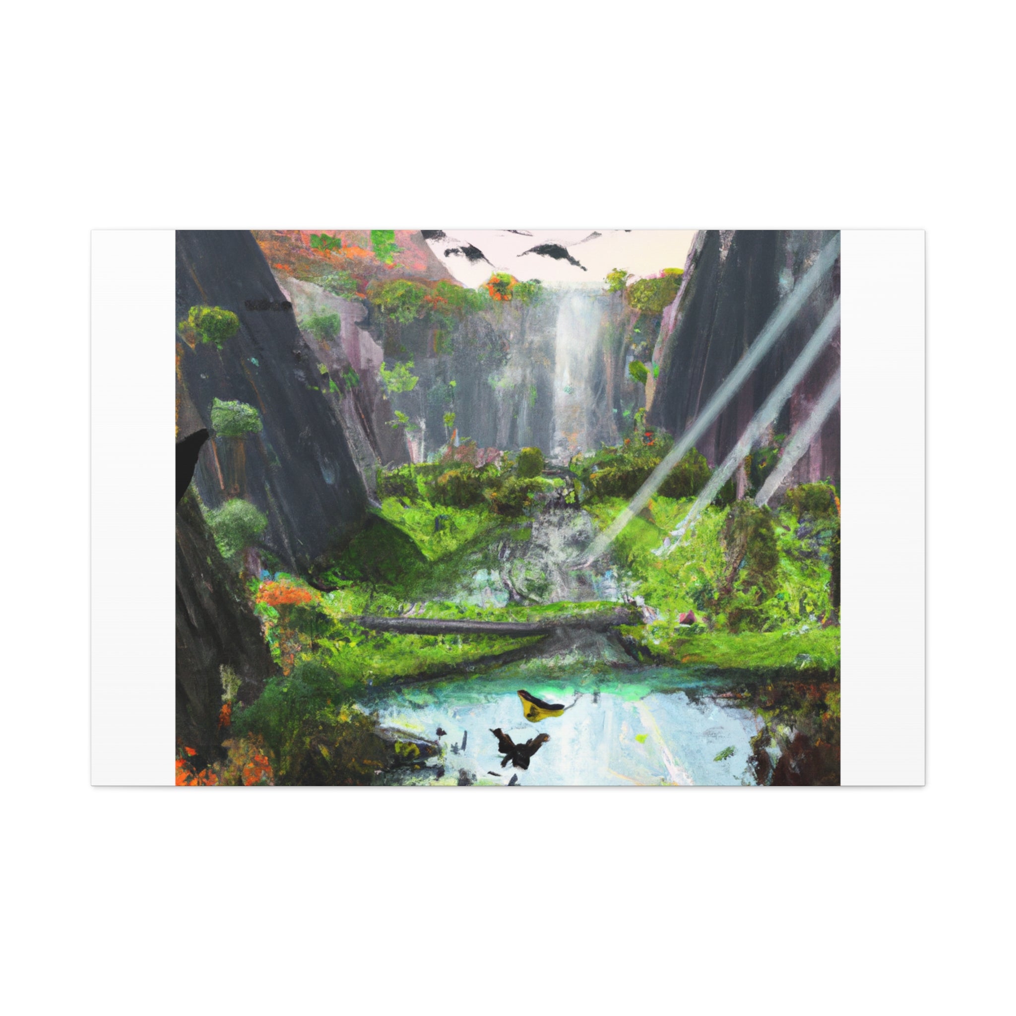 This stunning canvas print of a tranquil and restful landscape is perfect to add a touch of natural beauty to your living room. Digital art at...