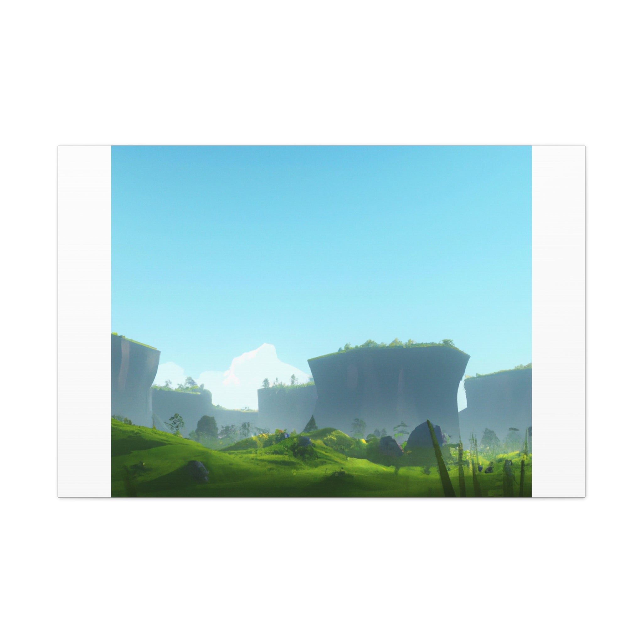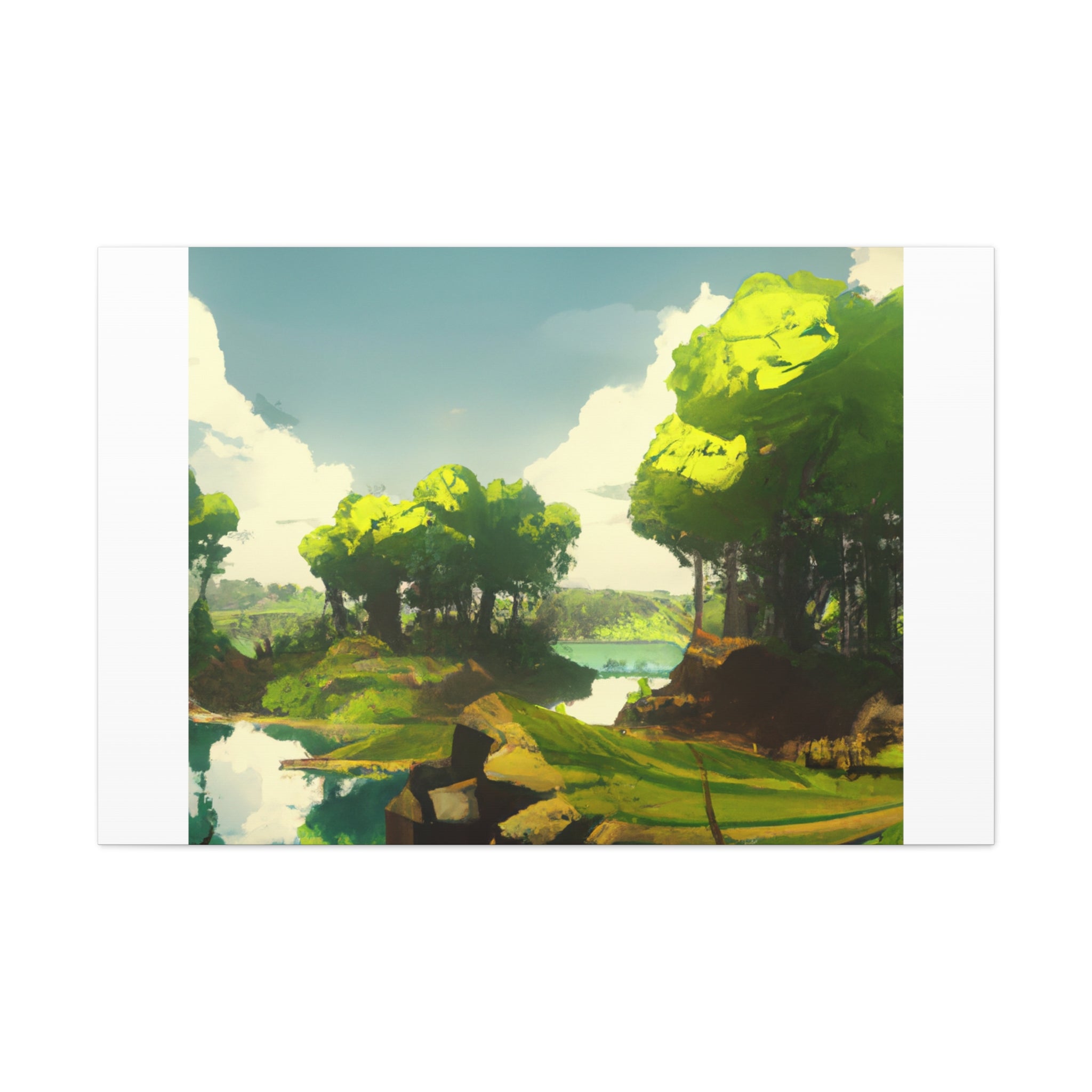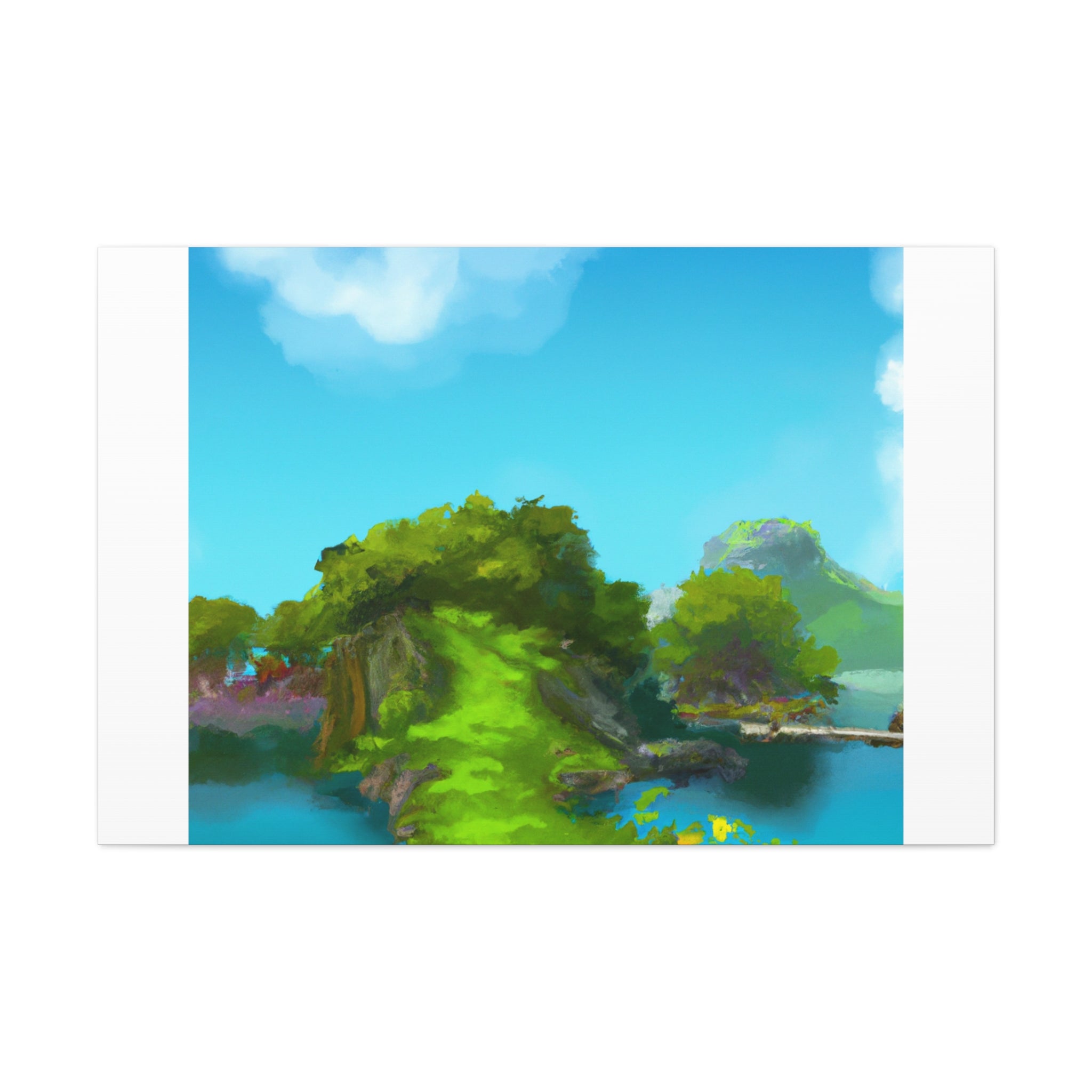 A unique canvas of a serene landscape scene perfect for any living room. This digital art depicts a calming atmosphere surrounded by lush greenery and tranquil...