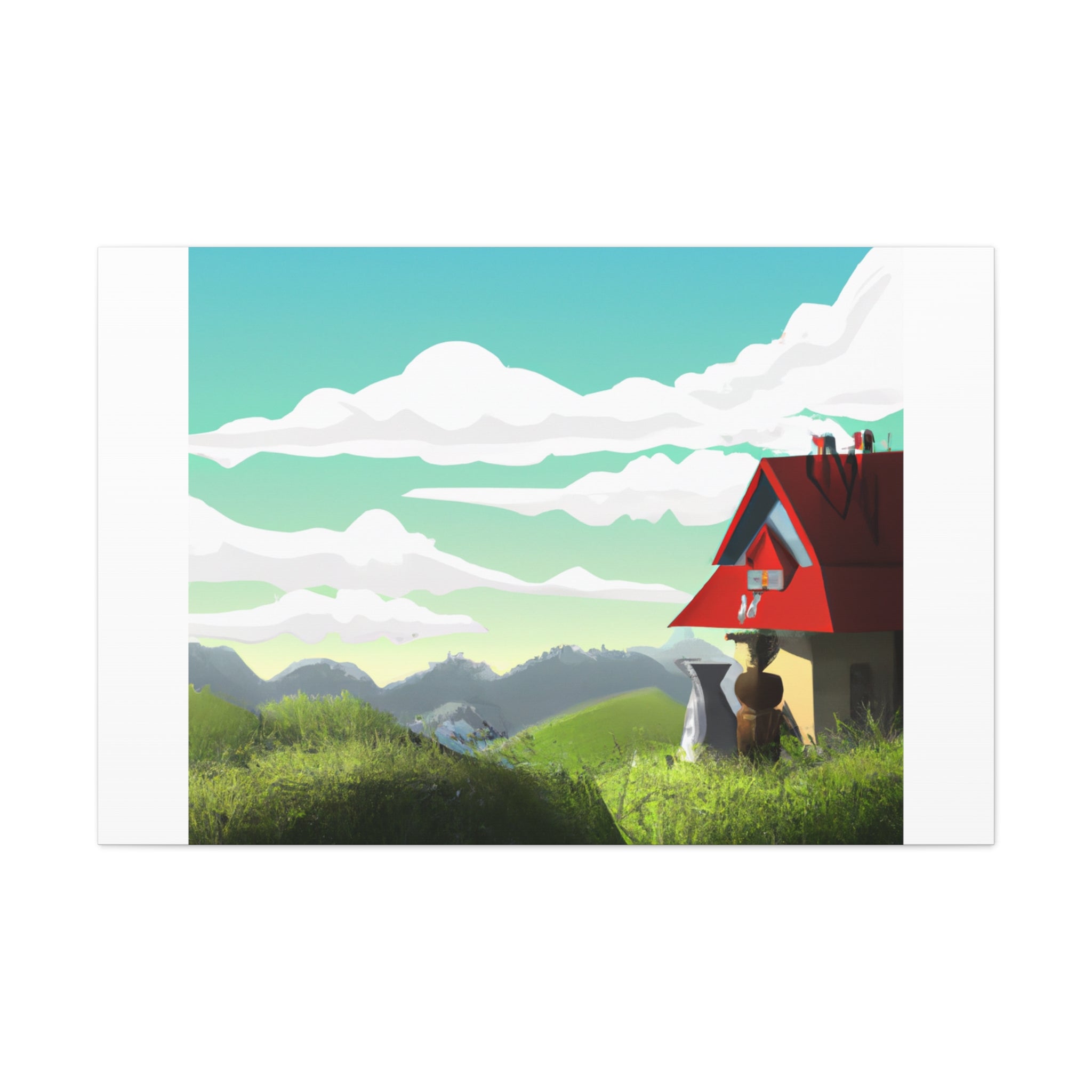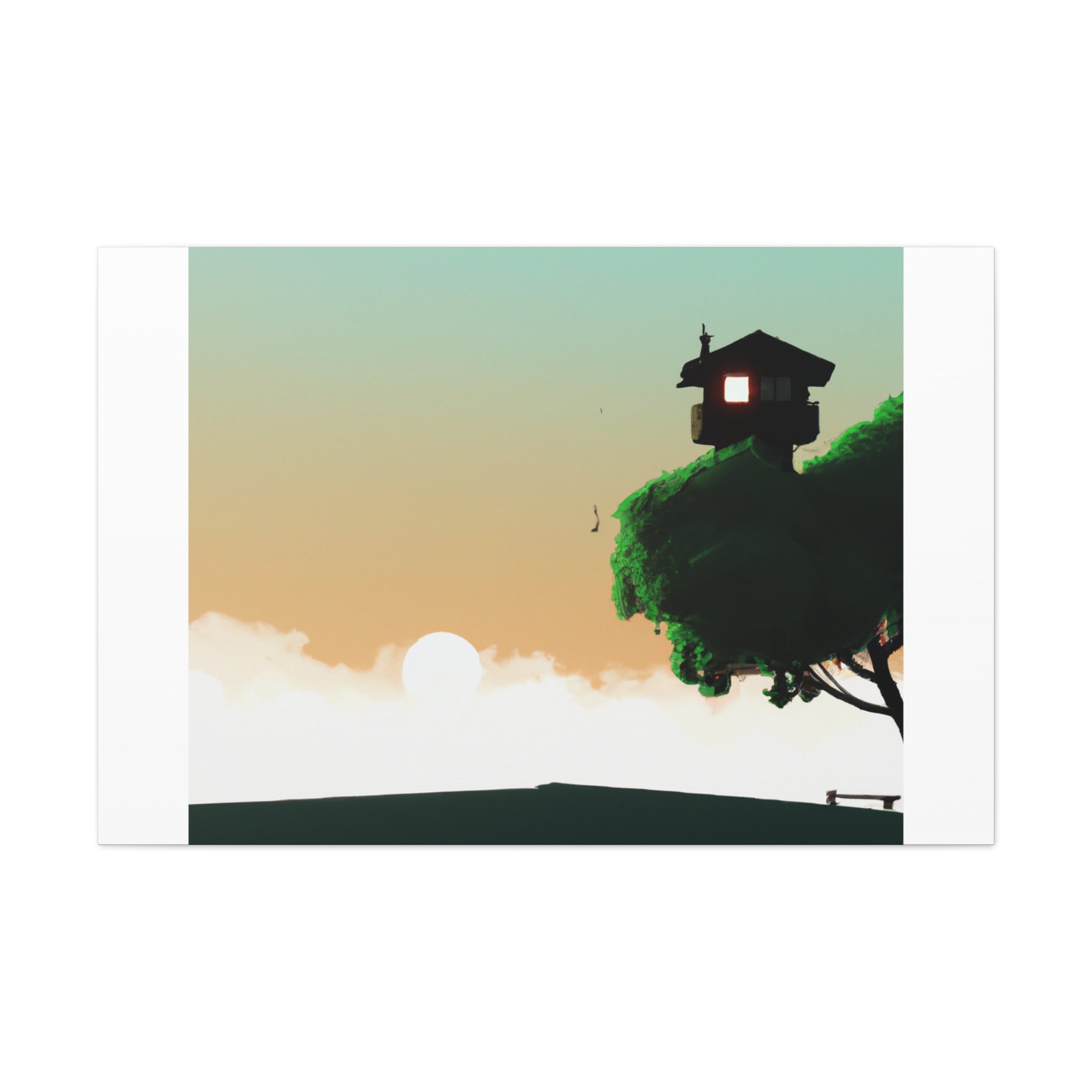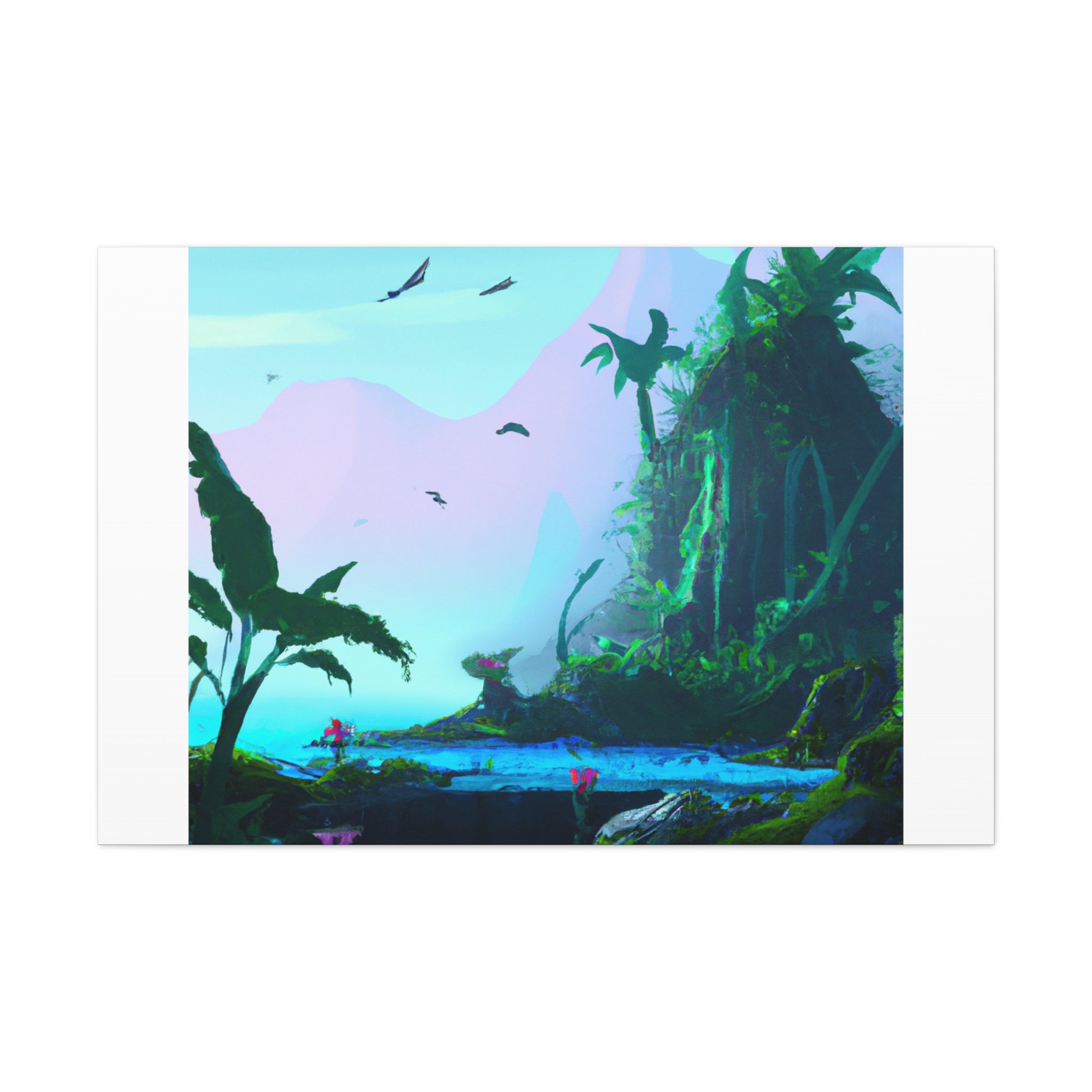 A unique canvas of a serene landscape scene perfect for any living room. This digital art depicts a calming atmosphere surrounded by lush greenery and tranquil...
