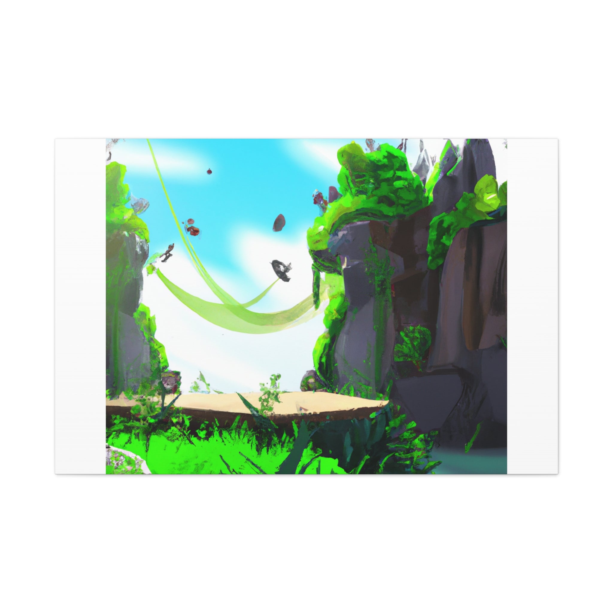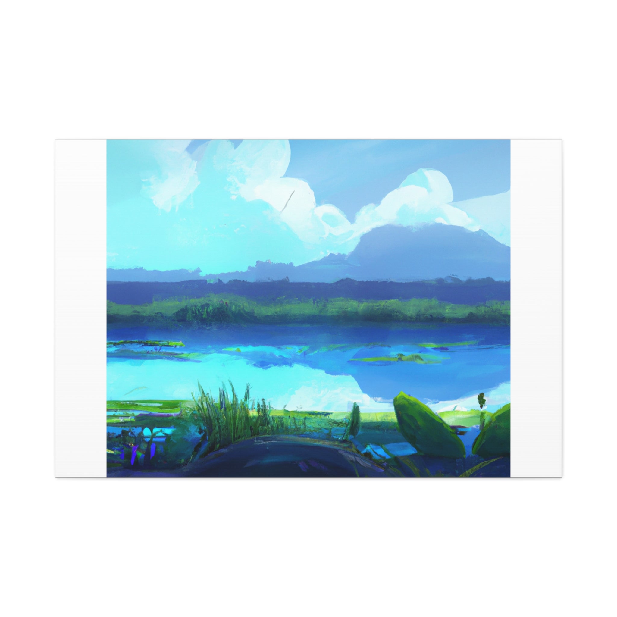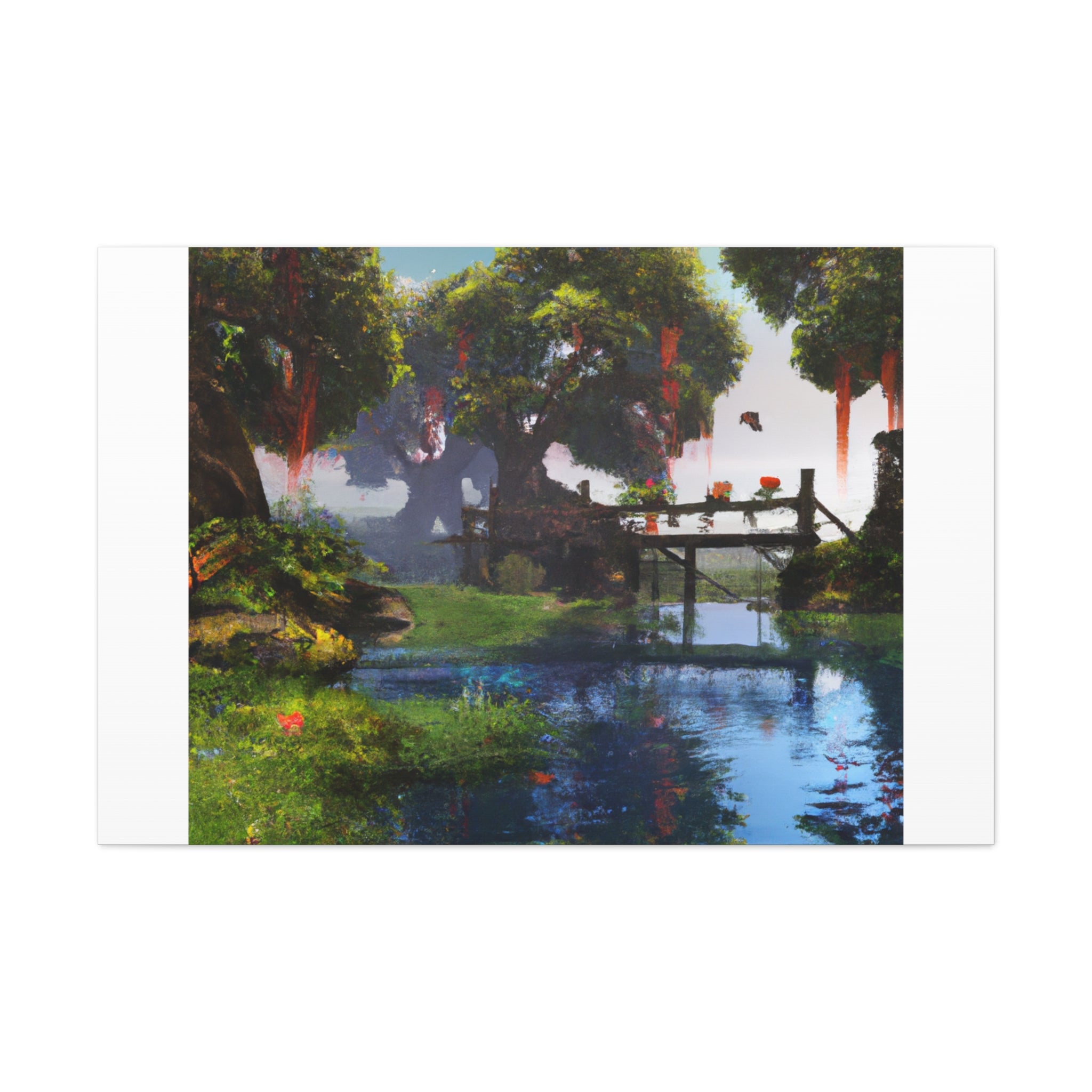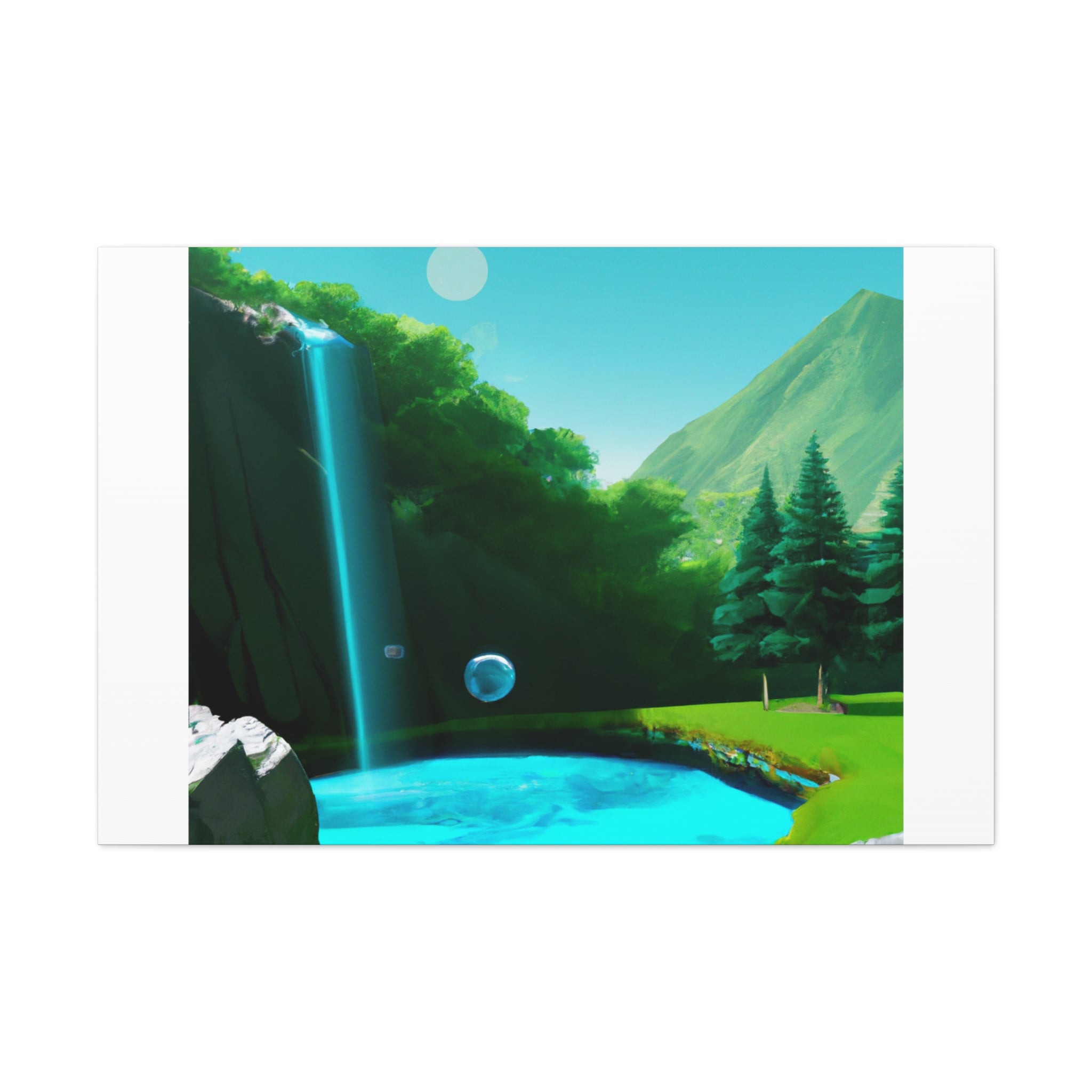 Digital art of a restful landscape scene on a canvas to add to your living room. Imagine being able to relax with the serene greens and...