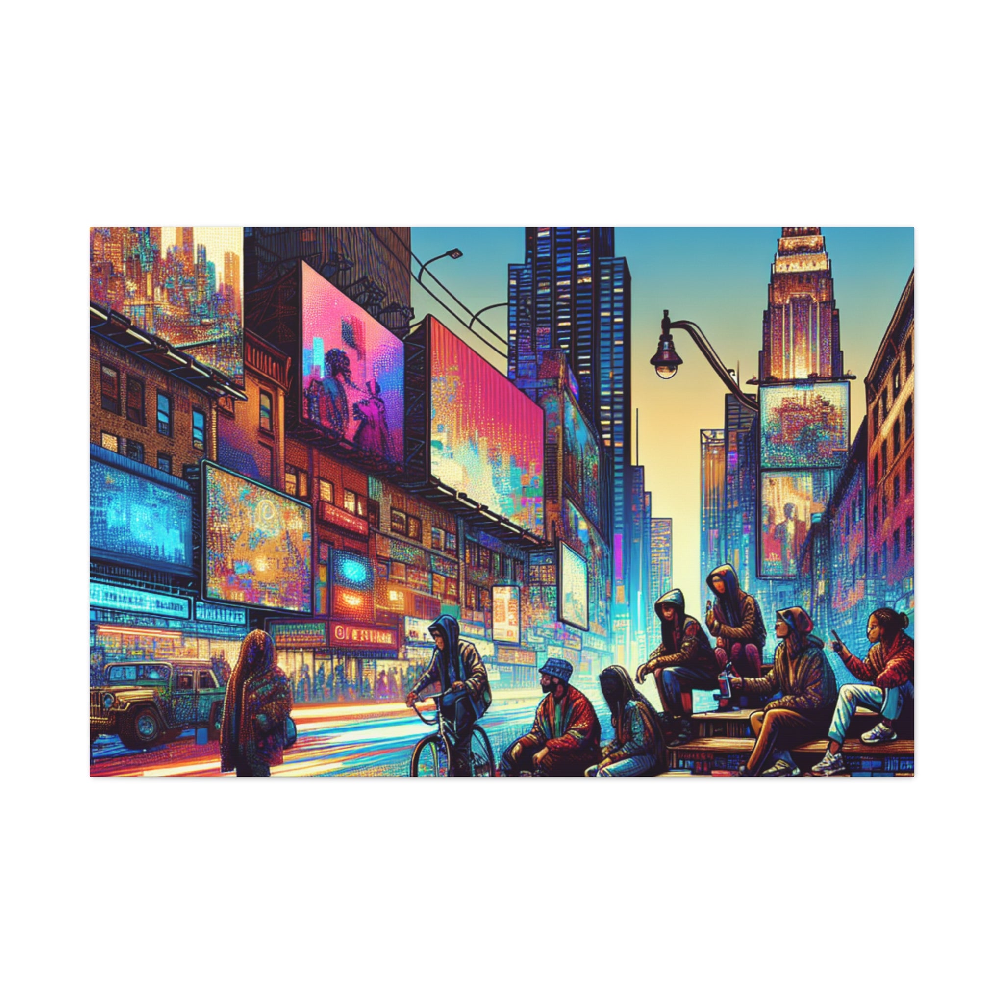 This is a unique Pop Art on canvas. Graphic and digital elements are blended together to create an eye-catching piece of art. An aesthetic, urban image...