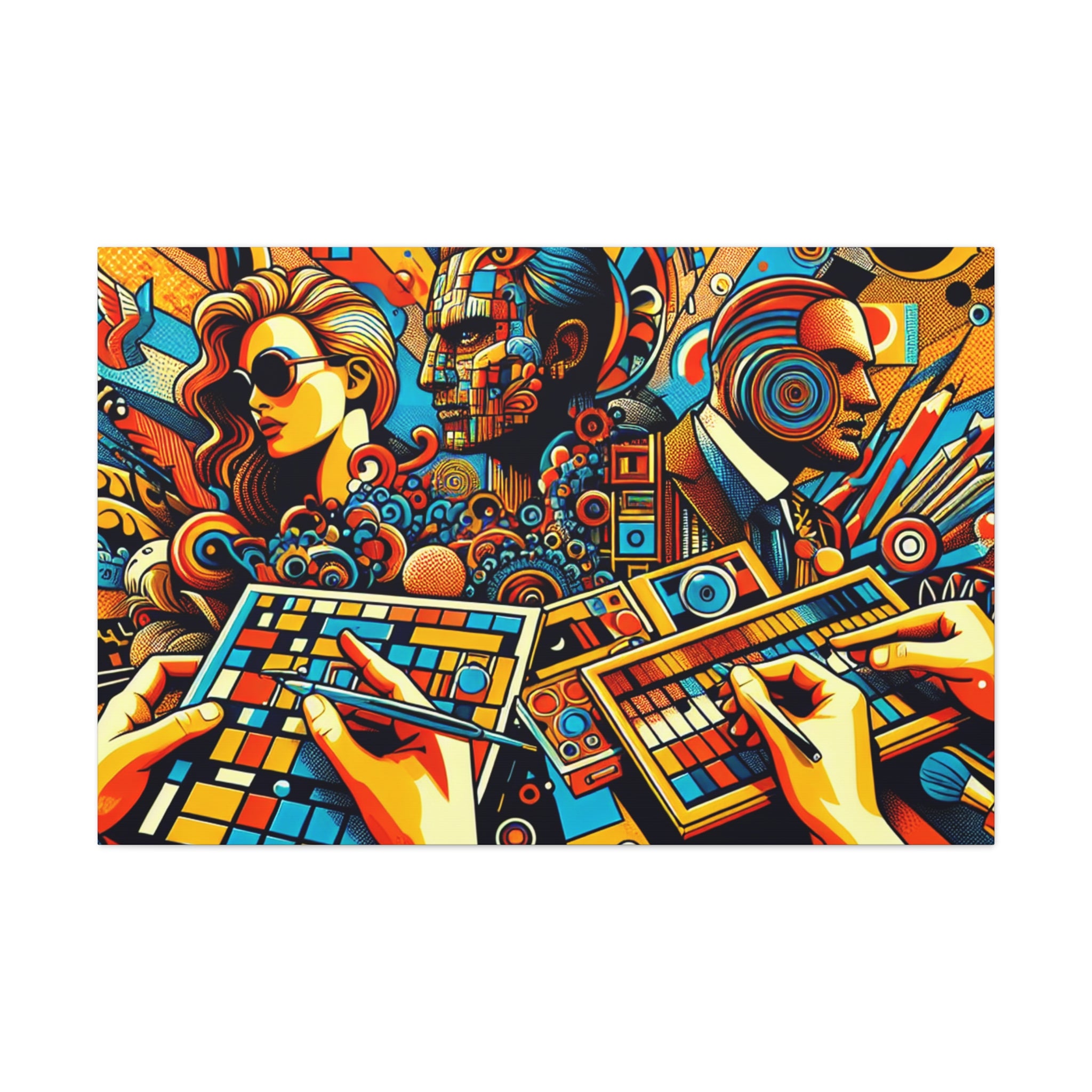 This canvas stands out with its vibrant Pop art, colorful graphic art, and sophisticated digital art. Its bold and colorful use of color creates a lively...