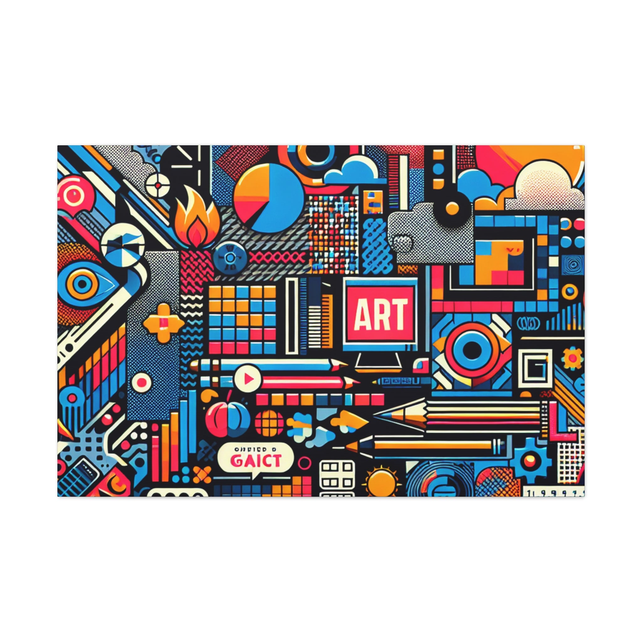 This canvas piece is a vibrant display of Pop art and graphic design melding together to create an extraordinary digital art. Working with digital tools and...