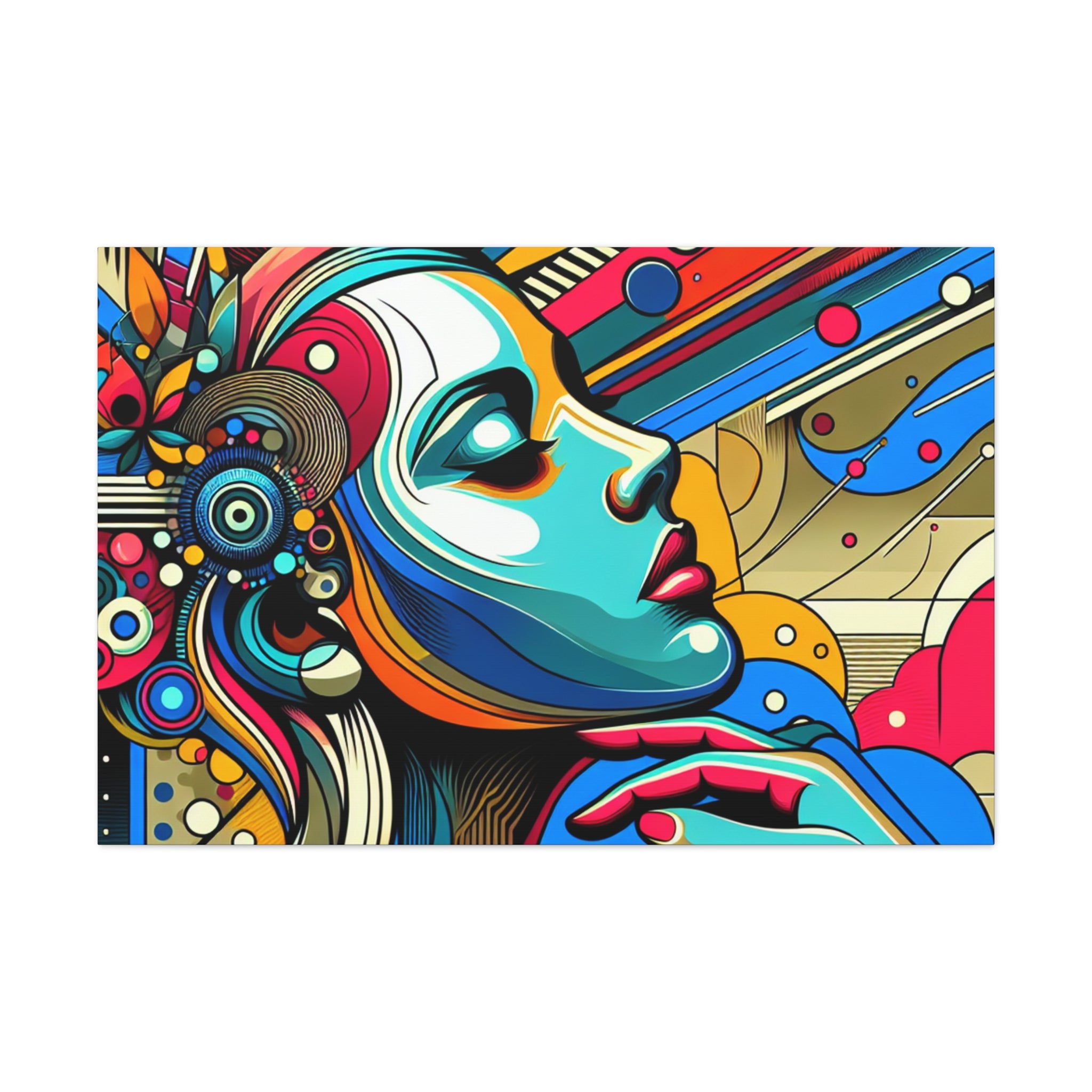 Canvas Juanita de la AbstracciónThis canvas is sure to add a pop to any wall! This vibrant digitally printed image is of a unique blend of Pop art, graphic art... Regular price £150.00 GBPSale price £150.00 GBP Regular priceUnit price perSale Sold out